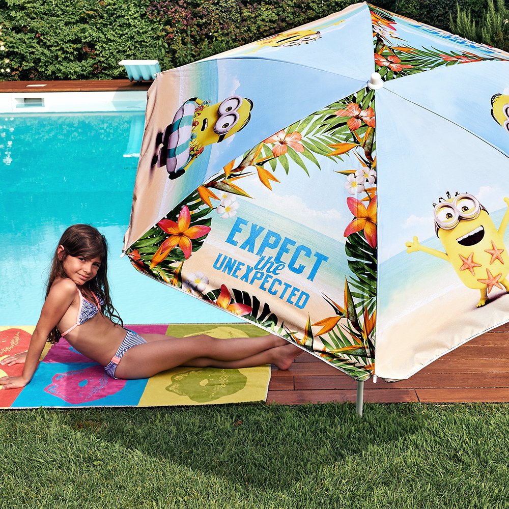 Perletti Kinder Ich Einfach Unverbesserlich Sonnenschirm für Strand, Garten, Meer und Terrasse – Windfest für Jungen mit Minion Bob – Durchmesser 125 cm – Hellblau – UV Schutz 50+